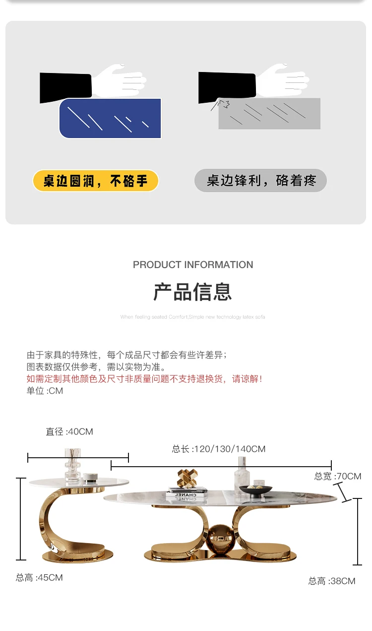 Shape: Round Folded: No Appearance: Modern Style Material: Metal Size: 140x70x38 40x40x45cm Is Retracted: No With Storage: Yes With Rollers: No Style: Minimalist Modern Place Of Origin: China Installation Method: Assembly is_customized: No Model Number: Coffee Tables Brand Name: oein Origin: Mainland China Type: Living Room Furniture Specific Use: Coffee Table General Use: Home Furniture Metal material: stainless steel style: Light luxury wind shape: rotundity Finish material: stainless steel Structural process: Metal process Tea table corner shape: rotundity Logistics: Free shipping Optional logistics: DHL FEDEX UPS Product Name 1: table basse Product Name 2: mesa Product Name 3: muebles Product Name 4: mesa de centro de sala Product Name 5: table basse de salon Product Selling Points 1: coffee tables for living room Product Selling Points 2: furniture Product Selling Points 3: Dining tables Related