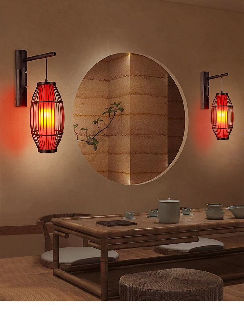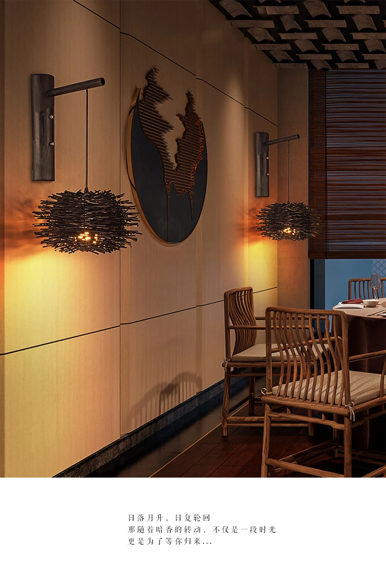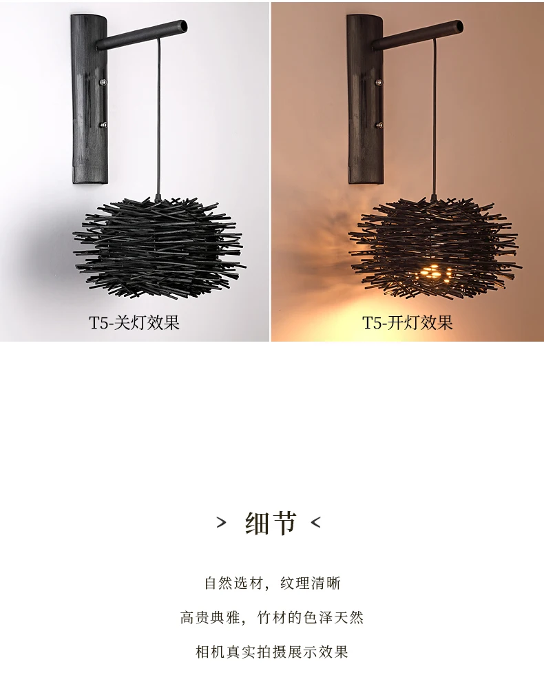 Composite style design and bamboo environmentally friendly materials, exquisite hand-woven, E27 threaded head, log ceiling tray.