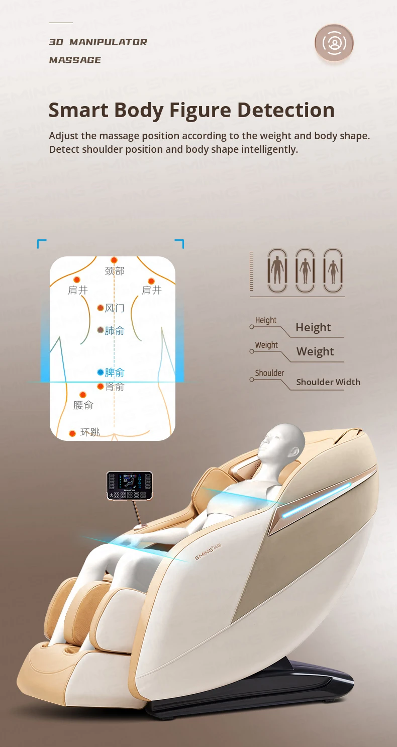 Adjust the massage position according to the weight and body shape. Detect shoulder position and body shape intelligently.